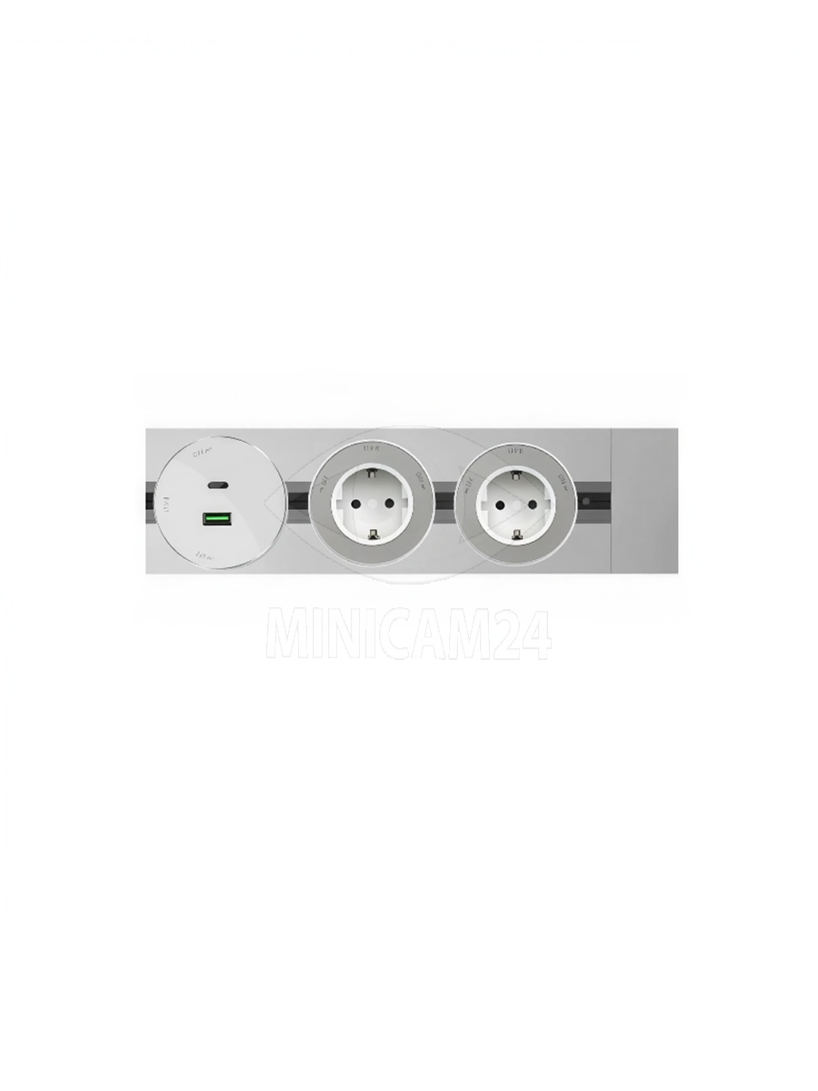 Трековая система розеток SilverLine 60см, 2 евророзетки, USB + Type C